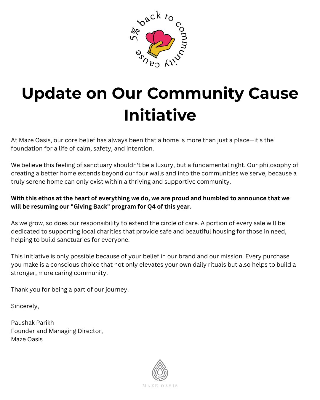 For more information about Maze Oasis's CSR initiatives and partnerships, including details on our 5% pledge and community engagement, please contact our Managing Director, Paushak Parikh.